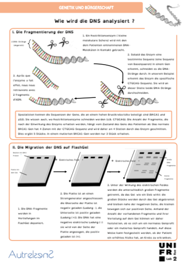 - Ein Szenario « Personalisierte Medizin », vorgeschlagen von Morgane Yerly (Master 2020). Lehrerin an der Sekundarstufe 1, Orientierungsstufe Jolimont.